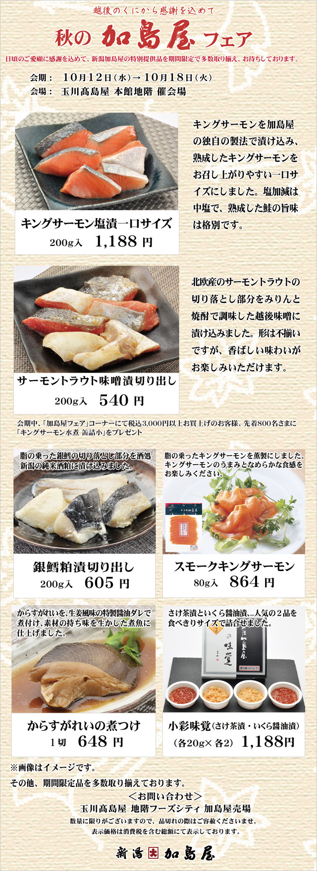 日頃の感謝を込め、髙島屋玉川店 にて「秋の加島屋フェア」を開催いたします。