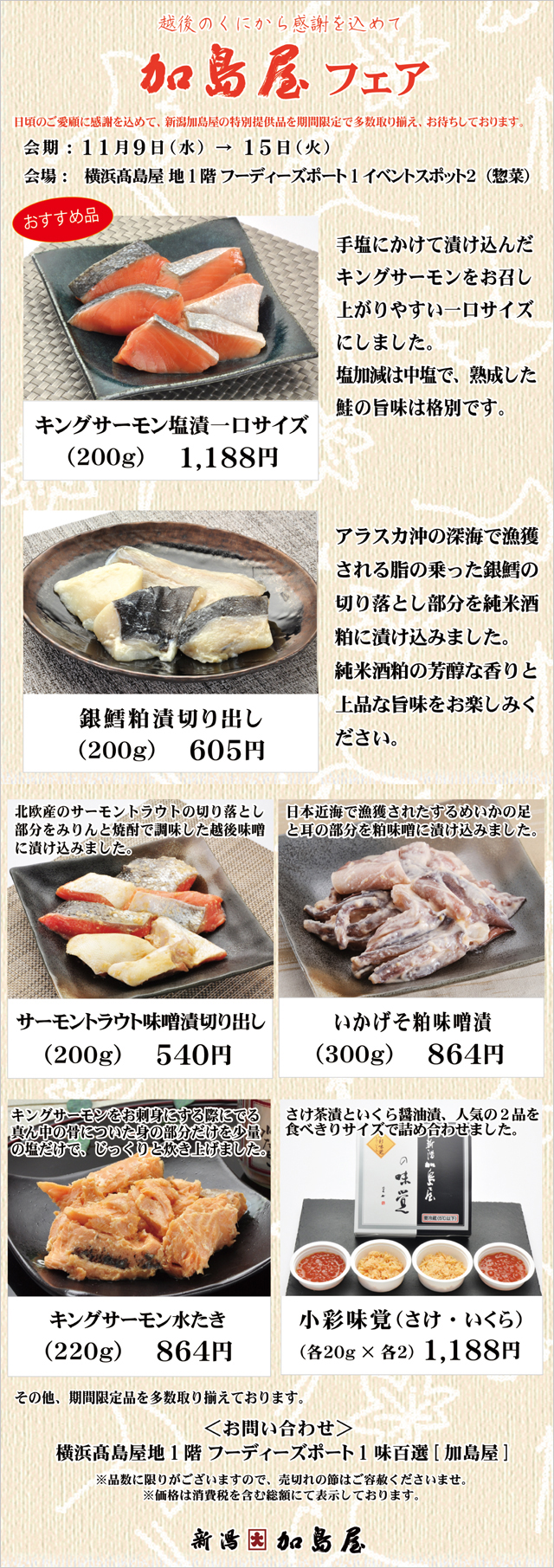 日頃の感謝を込め、髙島屋横浜店 にて「加島屋フェア」を開催いたします。