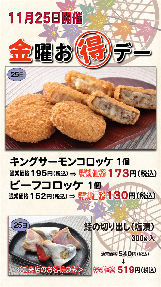 毎月恒例になりました「金曜お得デー」のお知らせです。
