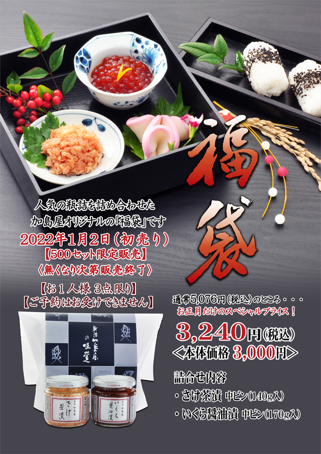 ネットショップは 1月1日より販売 ⇒ ネットショップで「福袋」を見る