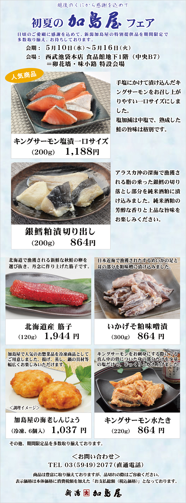 日頃の感謝を込め、西武池袋本店 にて「初夏の加島屋フェア」を開催いたします。