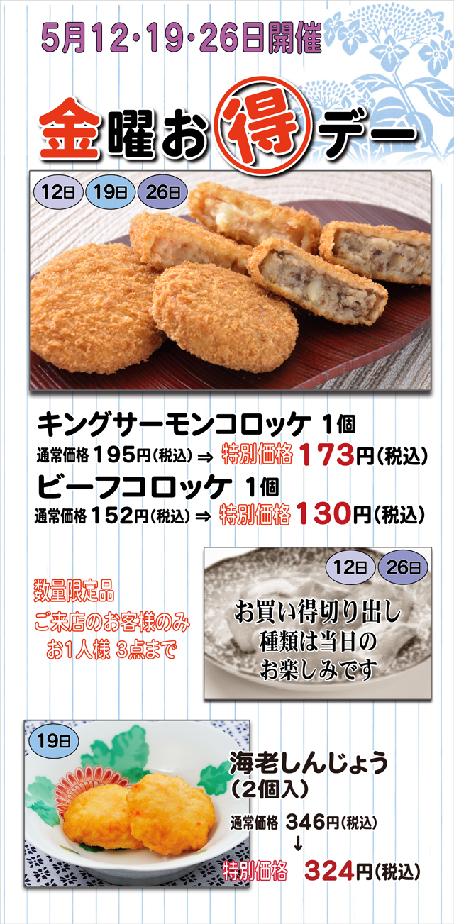 毎月恒例になりました「金曜お得デー」のお知らせです。