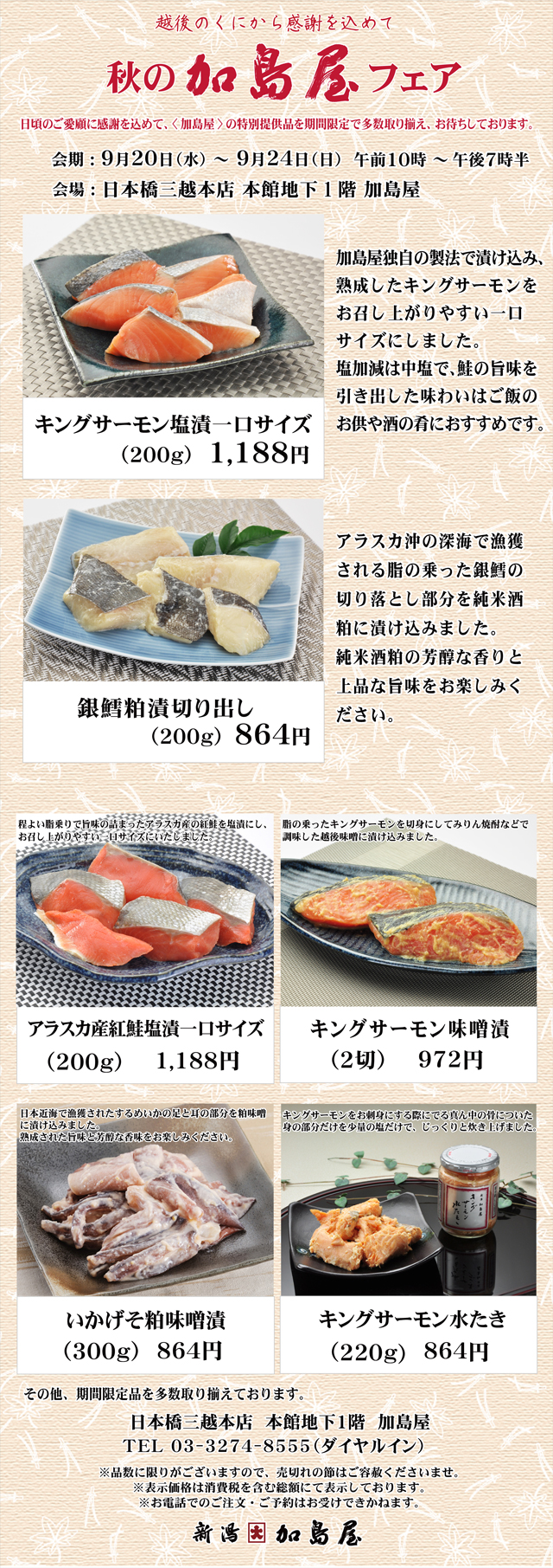 日頃の感謝を込め 日本橋三越本店 にて「秋の加島屋フェア」を開催いたします。