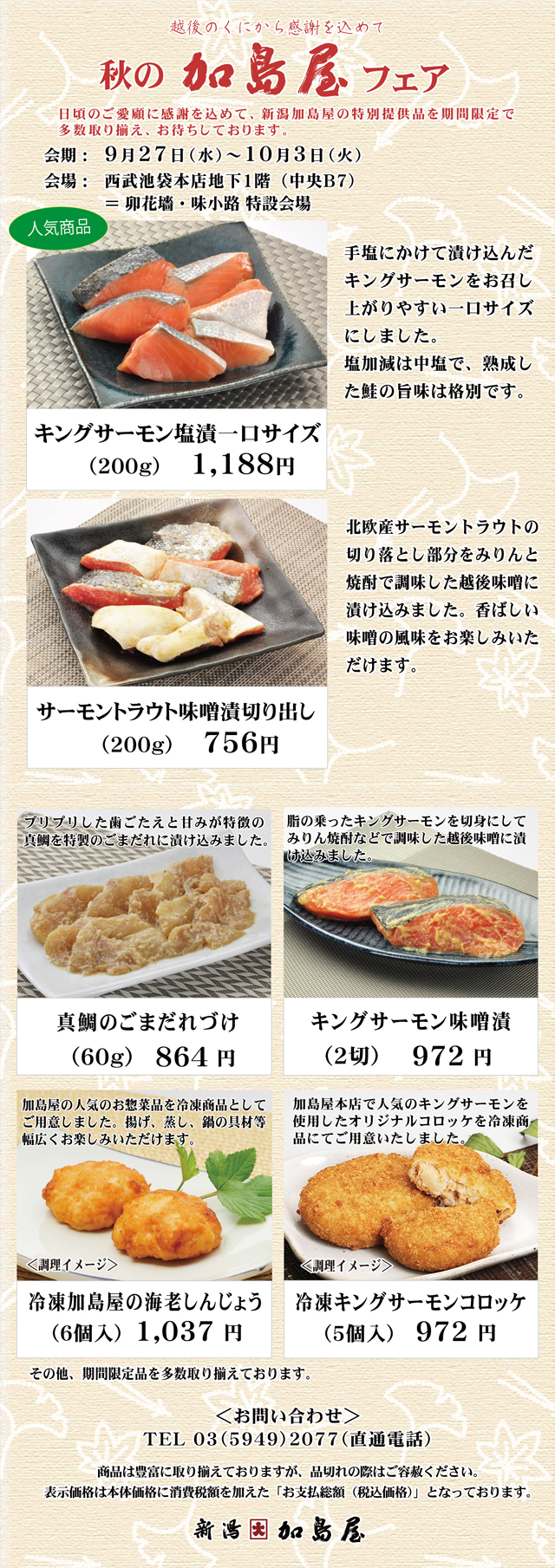 日頃の感謝を込め、西武池袋本店 にて「秋の加島屋フェア」を開催いたします。