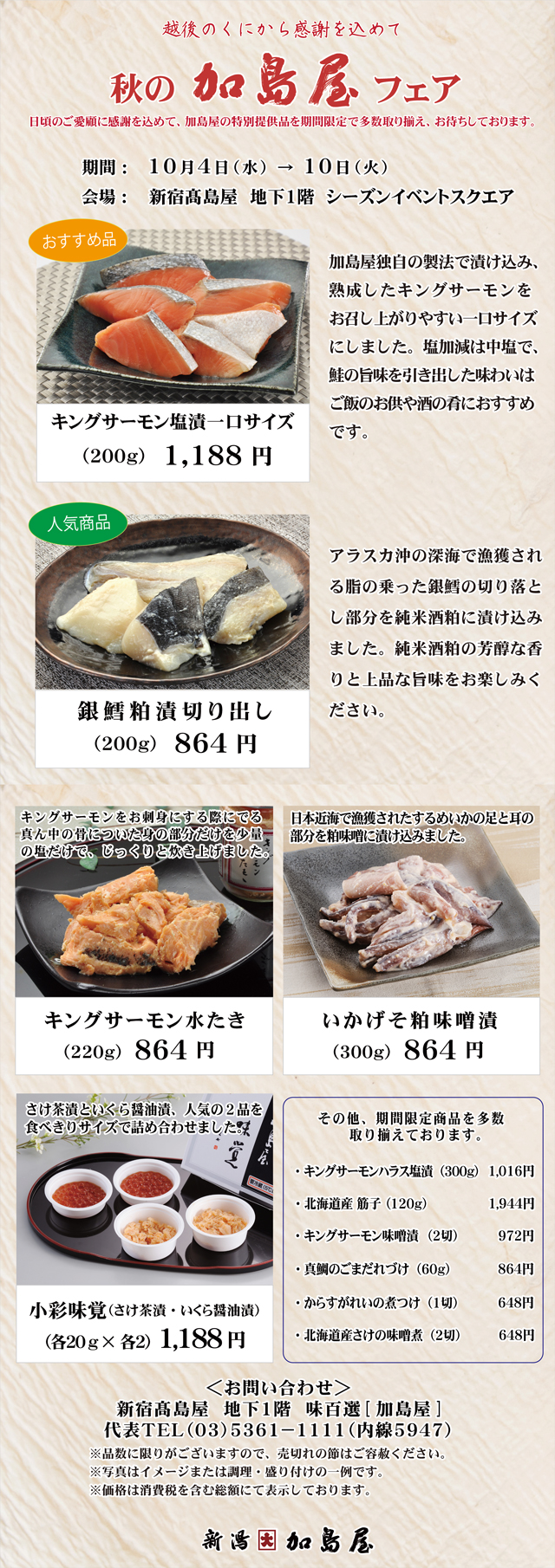 日頃の感謝を込め、 髙島屋新宿店にて「秋の加島屋フェア」を開催いたします。
