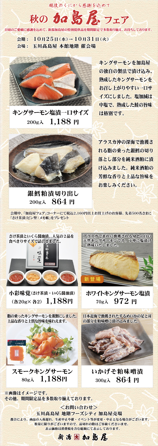 日頃の感謝を込め、髙島屋玉川店 にて「秋の加島屋フェア」を開催いたします。