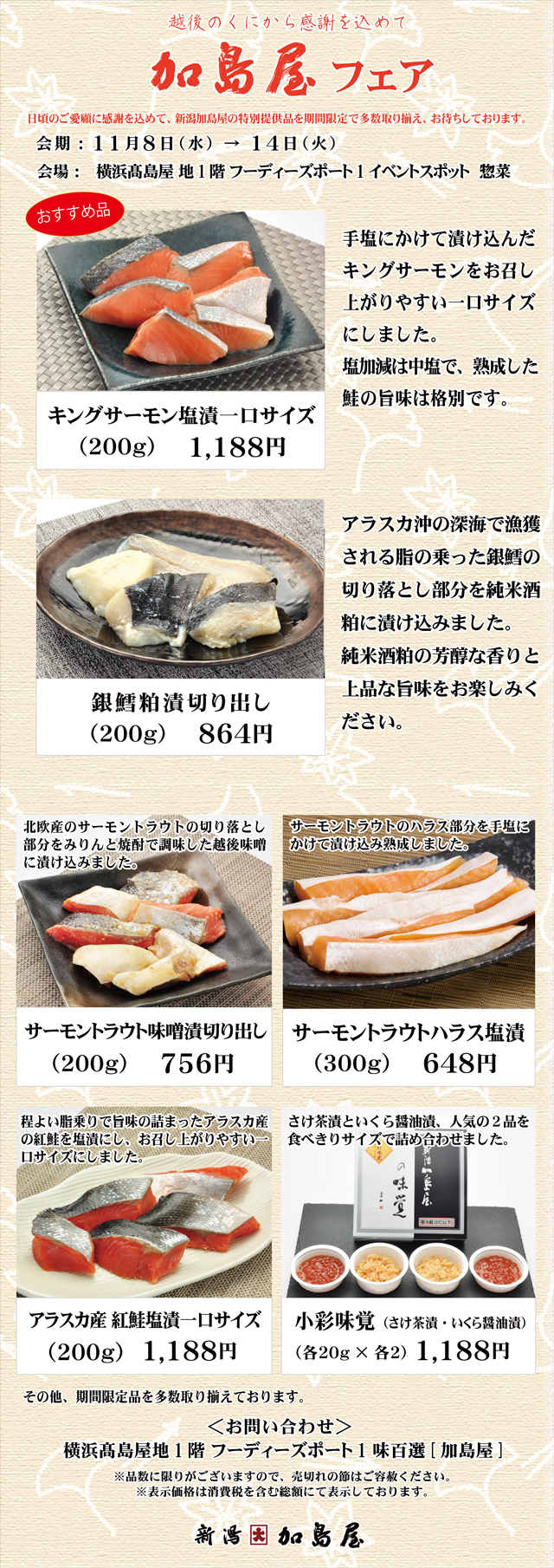 日頃の感謝を込め、髙島屋横浜店 にて「加島屋フェア」を開催いたします。