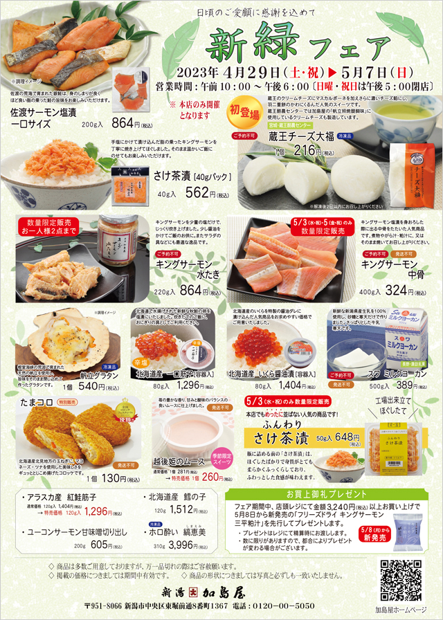 日頃のご愛顧に感謝を込めて「新緑フェア」を開催いたします。