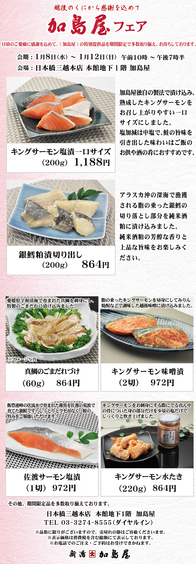 日頃の感謝を込め 日本橋三越本店 にて「加島屋フェア」を開催いたします。