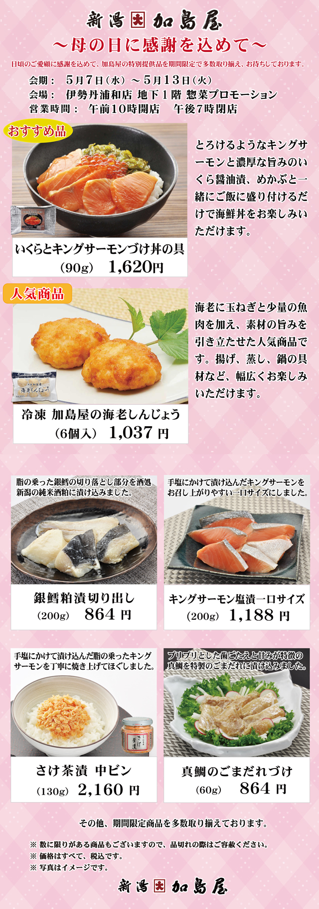 このたび、伊勢丹浦和店にて開催される催物「母の日に感謝を込めて」に出店致します。