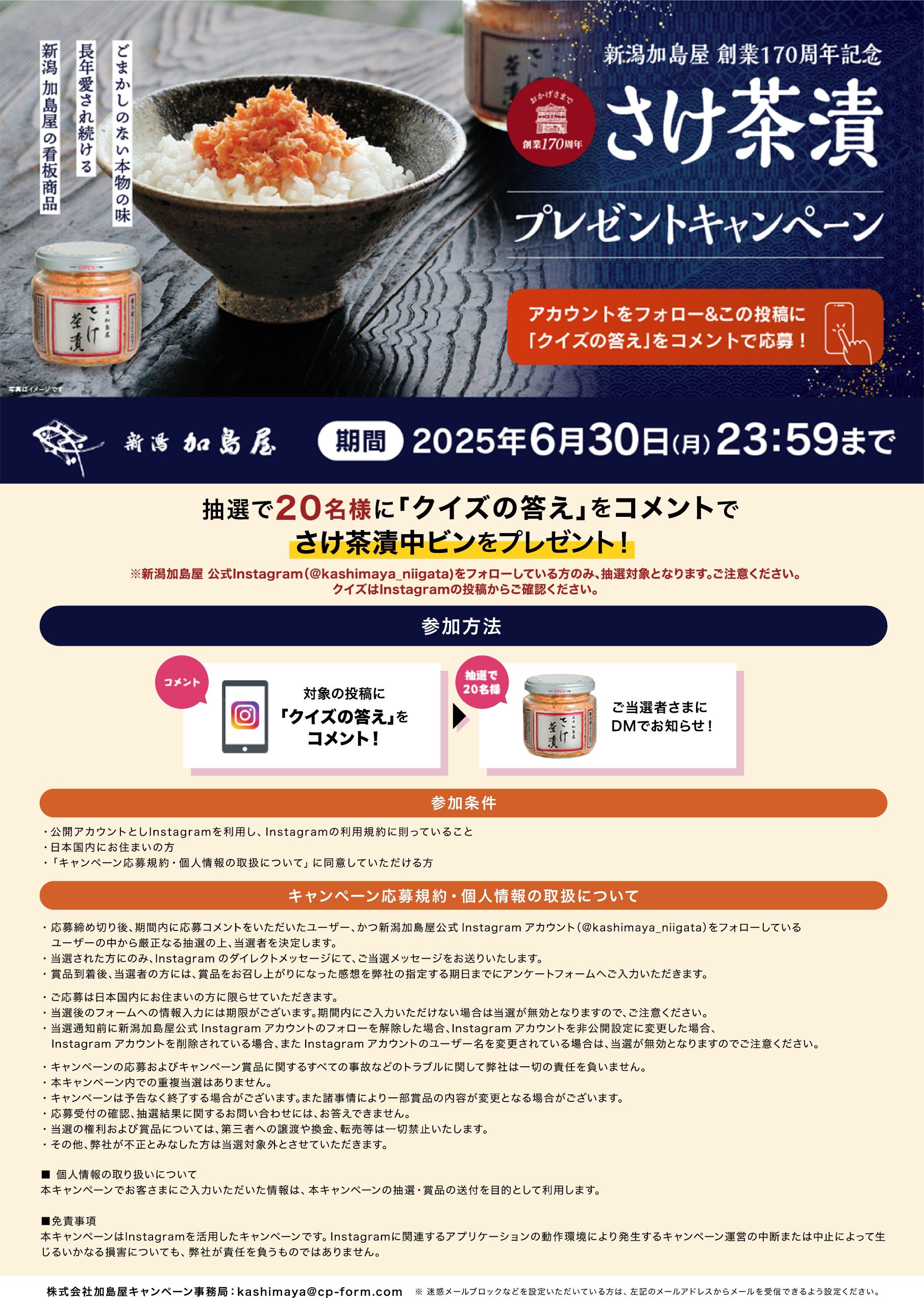 新潟加島屋Instagramキャンペーン対象投稿に「クイズの答え」をコメントしていただくと