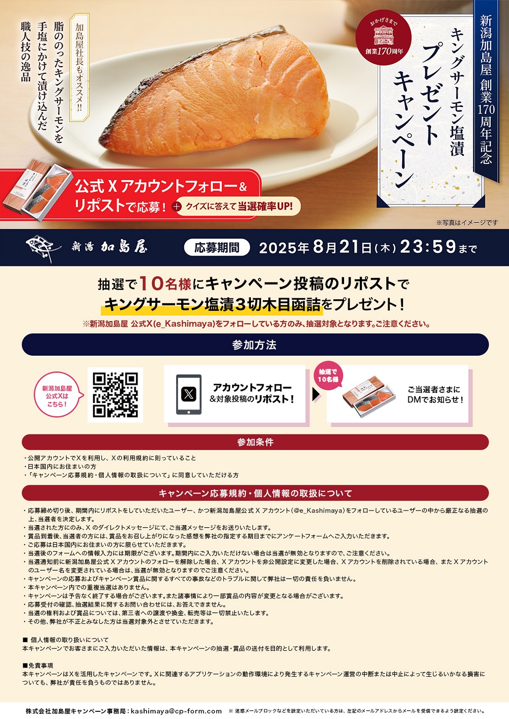加島屋 創業170周年を記念して「Xキャンペーン」を実施いたします。
