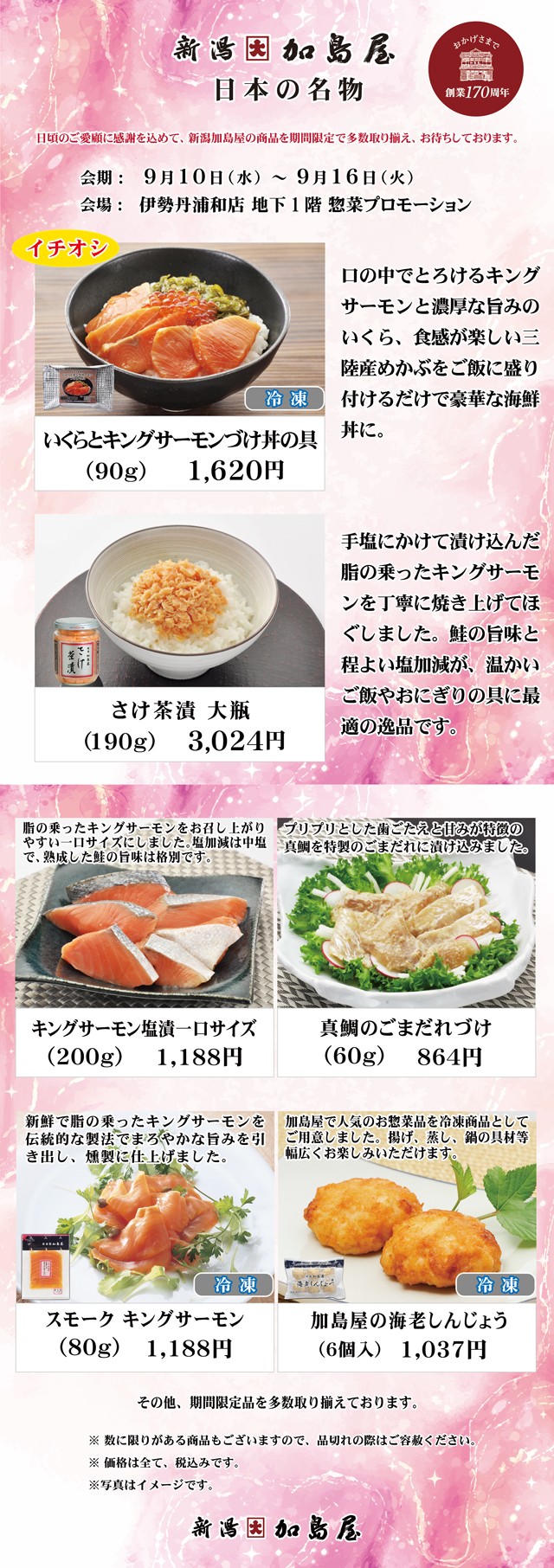 加島屋の商品を期間限定で多数ご用意して、皆様のお越しをお待ちしております。
