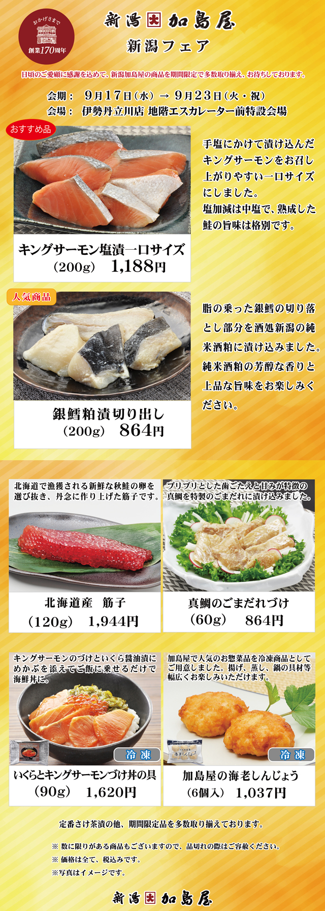 加島屋の商品を期間限定で多数ご用意して、皆様のお越しをお待ちしております。
