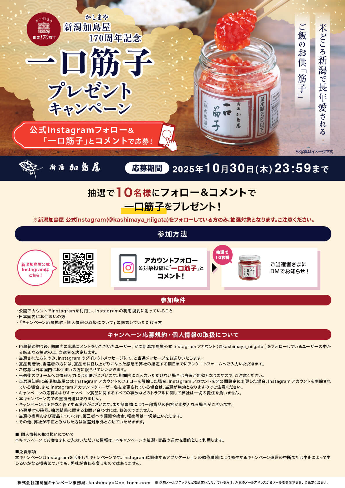 新潟加島屋Instagramキャンペーン対象投稿に「一口筋子」とコメントしていただくと