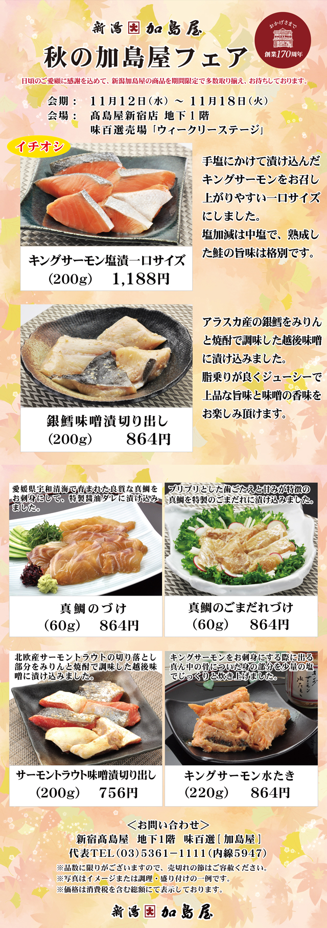 日頃の感謝を込め、髙島屋新宿店 にて「秋の加島屋フェア」を開催いたします。