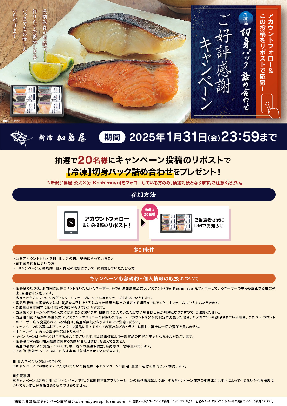 新潟加島屋Xのキャンペーン対象投稿をリポストしていただくと