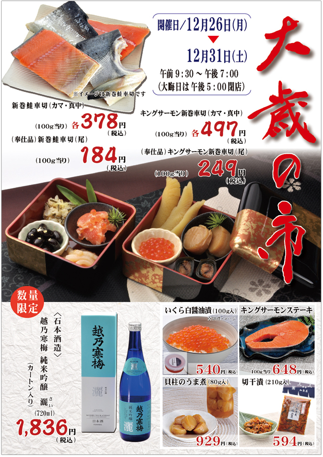 この一年のご愛顧に感謝し「大歳の市」を開催いたします。