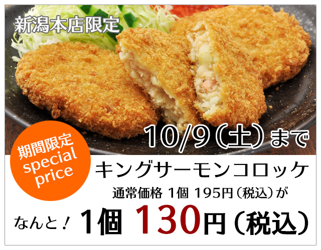 加島屋の人気惣菜「キングサーモンコロッケ」を期間限定の大奉仕価格にて販売いたします。