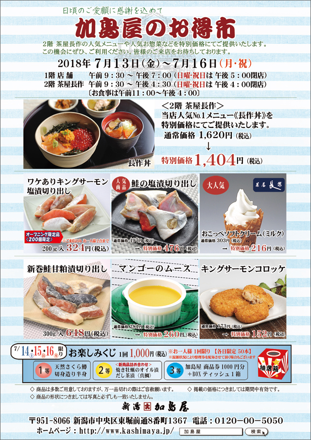 - ※ 加島屋のお得市は本店のみの開催となります。