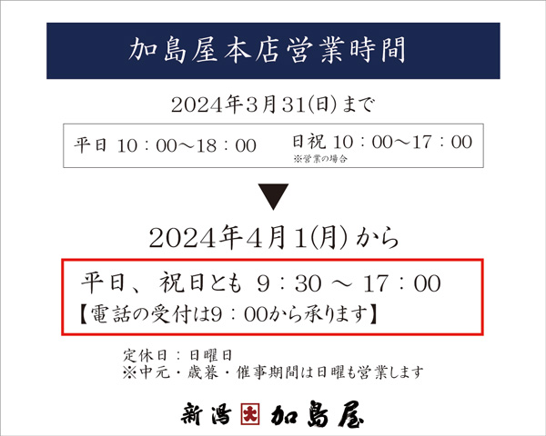 加島屋本店の営業時間を下記の通り変更させて頂きます。