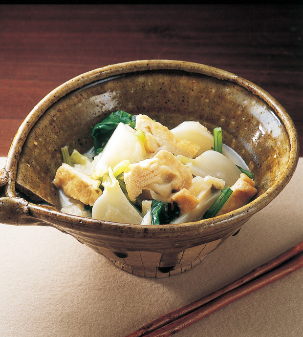 山海漬の辛味がかぶの甘みと油揚げでまろやかに。