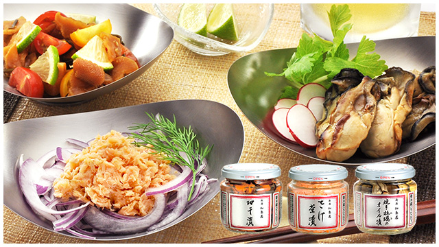 他「おウチDEごはんキャンペーン」月替わり商品「中瓶3本包み UG-3SK」さけ茶漬・切干漬・焼き牡蠣のオイル漬の中瓶3本セットで、ご飯やお酒のお供にぴったりの詰め合わせです。久しぶりの登場!人気No.1のどんぶり「海鮮三色丼」お中元ギフトやおすすめ品などを、併せてご紹介させていただきます。