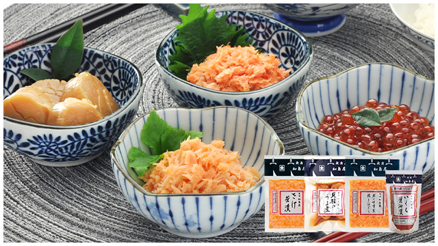 敬老の日にオススメのネットショップ限定ギフト「袋詰セット AD-P6」「中瓶2本セット AD-2M」に、4種類の袋詰が入ったおウチDEごはんの月替わり商品「袋詰セット UG-P4C」新商品の「佐渡サーモン塩漬一口サイズ」他、温めるだけで手軽に味わえる「加島屋の煮つけ」などを、ご紹介させていただきます。