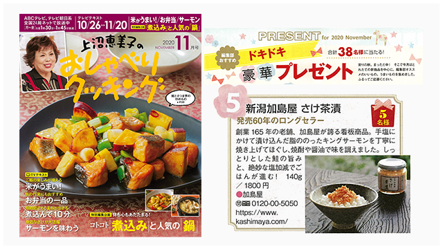 月刊雑誌「NHK ラジオ深夜便」の秋のワクワクプレゼントコーナーに加島屋商品を紹介しました。