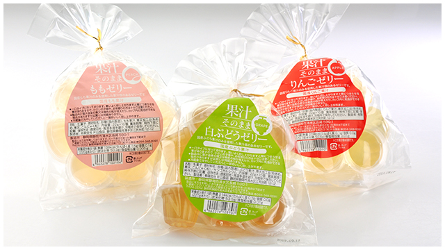 果汁そのまま 白ぶどうゼリー 22g×10個 378円(税込) 果汁そのまま りんごゼリー 22g×10個 378円(税込) 果汁そのまま ももゼリー 22g×10個 378円(税込)