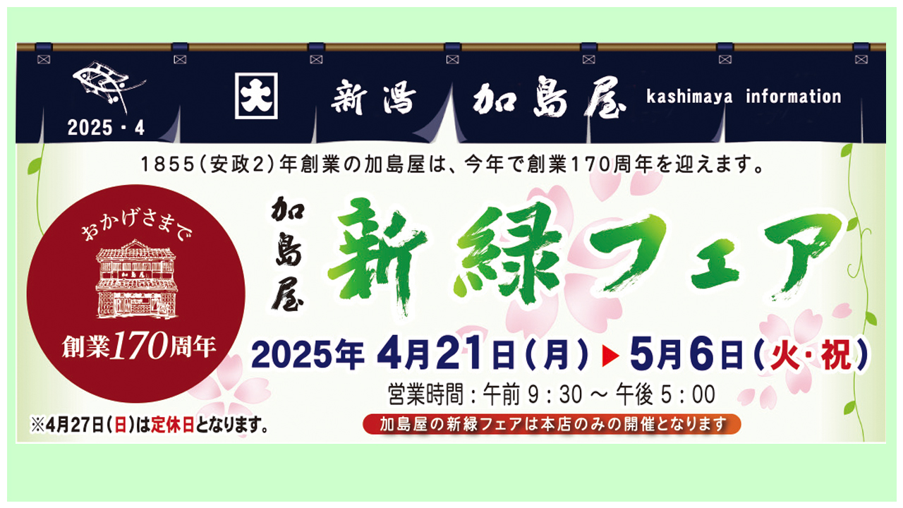 加島屋 創業170周年を記念して「Xキャンペーン」を実施いたします。
