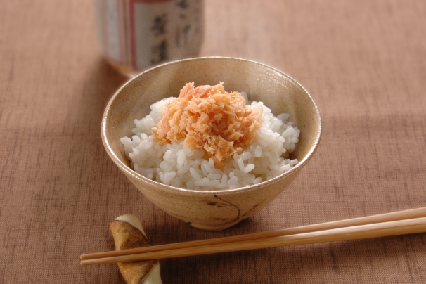 現在の看板商品である『さけ茶漬』が誕生したのは、昭和34年(1959年)のこと。 当時、4代目社長 長作の母親は、忙しく働く息子を思い、食べやすいように焼いた鮭の中骨から身をほぐしてお昼のおかずにしていました。 その心温まる母のおもいやりを広く皆さまにお届けしたい。『さけ茶漬』は、その思いから生まれた商品です。